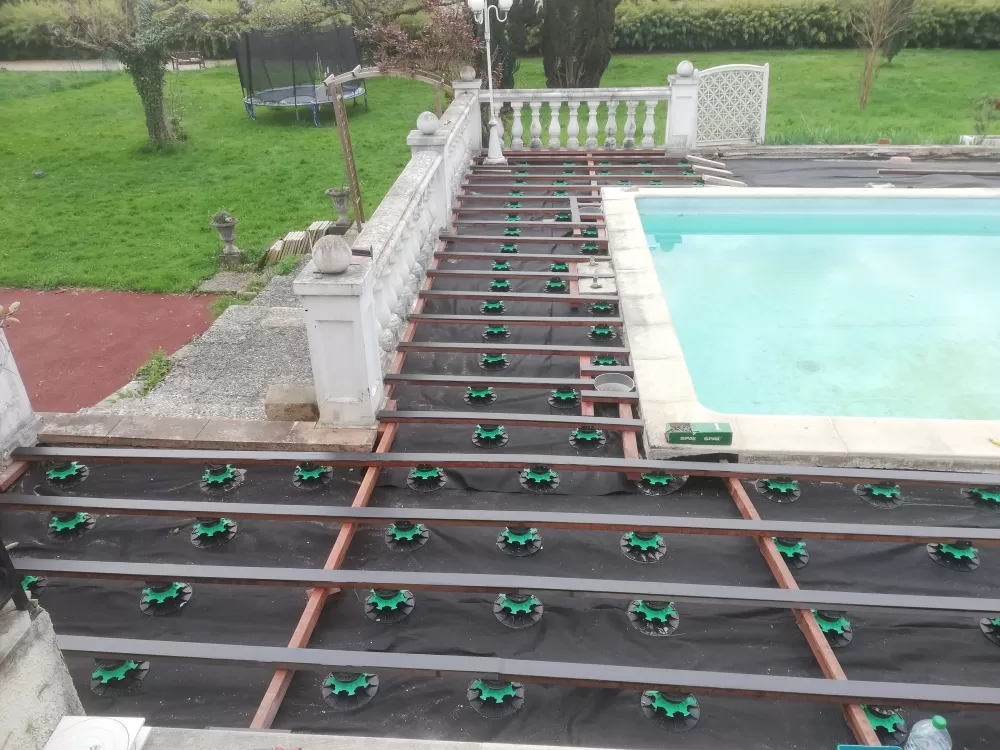 Votre menuisier à Lagnieu a procédé a la dépose de l'ancienne terrasse en dalles pour créer une terrasse en bois exotique CUMARU.