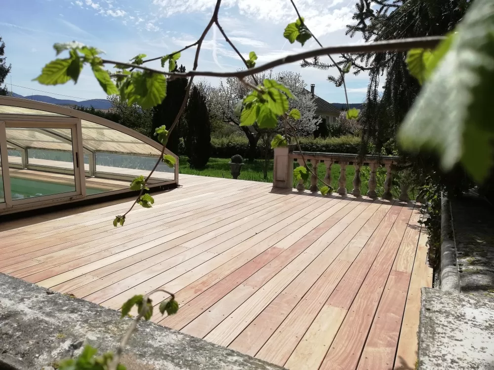 Bugey Menuiserie et Rénovation vous présente sa dernière création d'une terrasse en bois à Lagnieu.